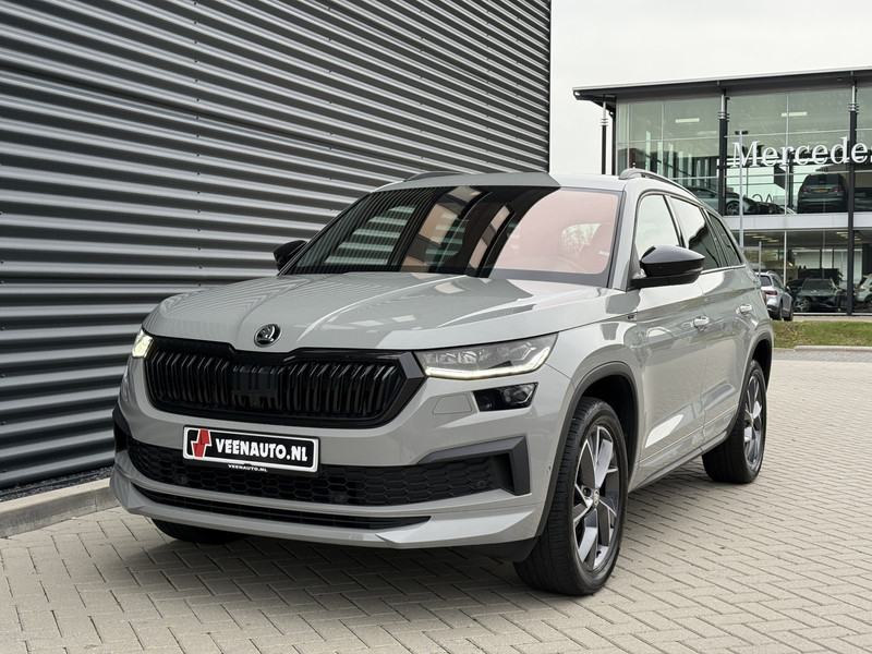 Schitterende Skoda Kodiaq 1.5 TSI Sportline in Steel Grau metallic voorzien van veel mooie opties zoals: 360 Camera, Apple Carplay/Android Auto, adaptieve cruise control, Lane Assist, dodehoekdetectie, elektrische verstelbare stoelen met memory, stoelverwarming voor + achter, airco achterin, keyless entry and start, sfeerverlichting, zwarte hemel, 19 inch lm velgen, etc..