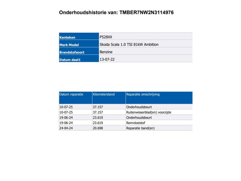 - Onderhoudsboekje aanwezig?: