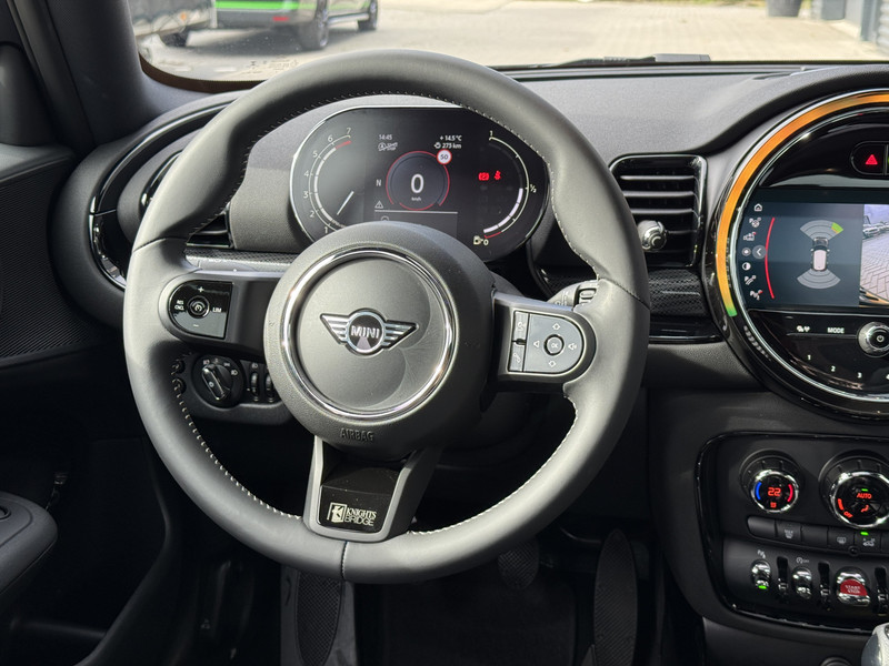Schitterende Mini Clubman in Enigmatic Black metallic (heel diep donkerblauw). Deze Clubman zit bomvol opties zoals: Panorama dak, achteruitrijcamera, trekhaak (TREKGEWICHT 1100KG), cruise control, parkeersensoren voor + achter met parkeer assistent, draadloze telefoonlader, Apple Carplay, navigatie, virtuele cockpit, etc..
