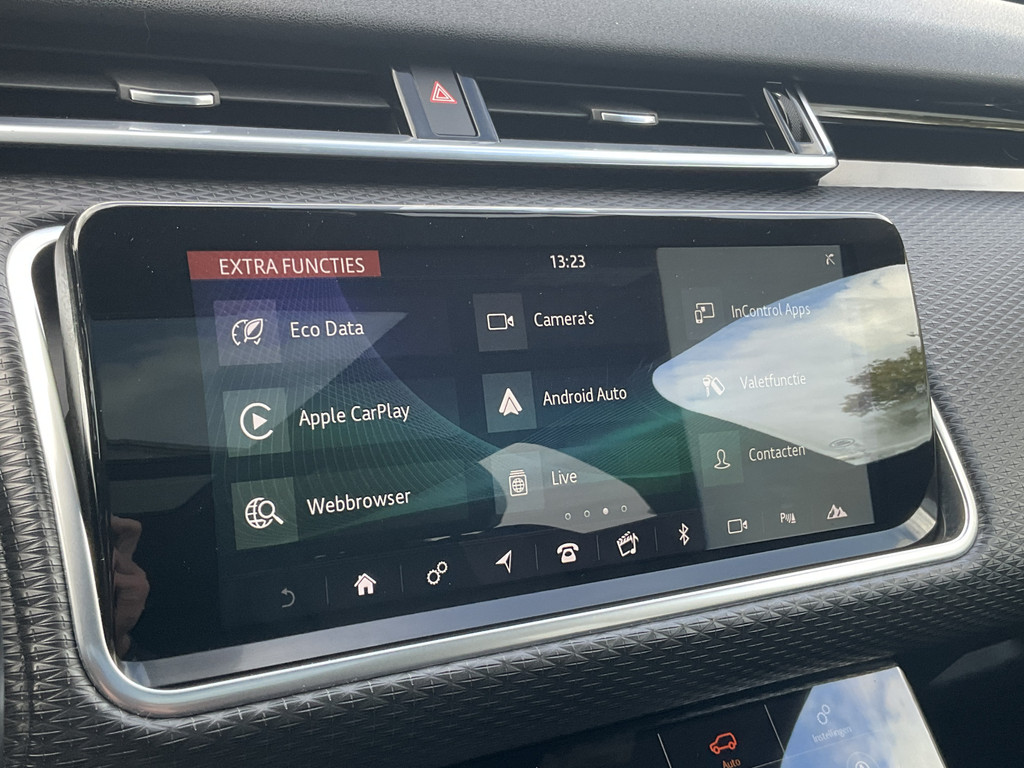 Met het digitale dashboard heeft u essentiële info in beeld. Altijd, overal. Afstand schatten bij het achteruitrijden? Niet nodig. U weet het precies, dankzij de achteruitrijcamera. Adaptive cruise control houdt de ingestelde snelheid vast en houdt automatisch afstand tot uw voorligger. Uw smartphone is tegenwoordig de sleutel tot heel veel. Ook voor deze auto. Remote services, noemen we dat. Waar u ook bent, contact houden is een eitje. De sensatie van superieur geluid wordt geleverd door het high performance audiosysteem. Ook is de Land Rover uitgerust met: full map navigatiesysteem, WIFI-hotspot, achteropkomend verkeer waarschuwing, electronic climate control, schakelpaddles aan het stuur en regensensor.