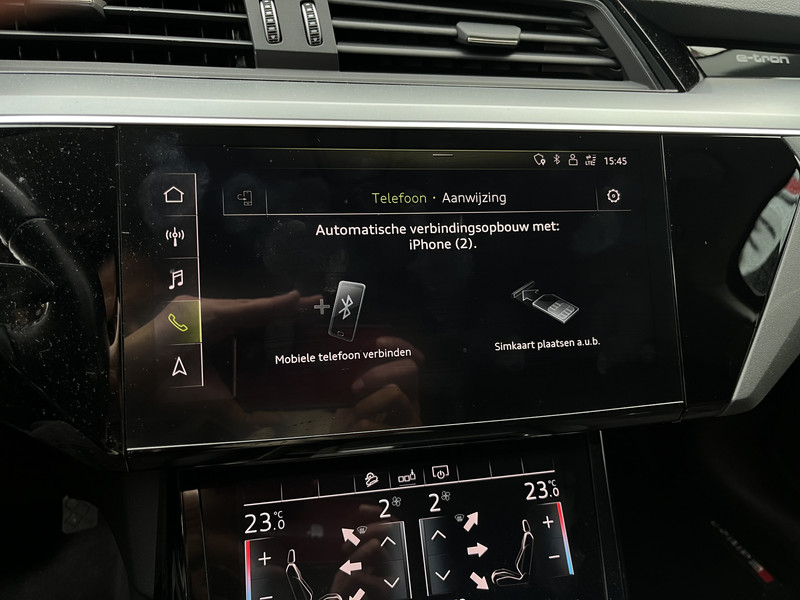 Audi heeft de auto opnieuw uitgevonden. De volledig elektrische Audi e-tron is duurzaam, maar biedt tegelijk veel rijcomfort en geweldige prestaties. U wordt actief onderdeel van de energietransitie met de elektromotor. Het elegante exterieurdesign krijgt een sportieve impuls met het S-Line styling pakket. De krachtige motor geeft deze Audi uitstekende prestaties. Hoe koud het buiten ook is, de stoelverwarming geeft u meteen een behaaglijk gevoel. Oneffenheden in het wegdek? U merkt er niets van dankzij de ingebouwde luchtvering. De elektrisch bedienbare achterklep opent met een druk op de knop. Bij de uitrusting van deze Audi horen onder meer 20 inch lichtmetalen velgen, LED koplampen, warmtewerend glas, in delen neerklapbare achterbank, LED-achterlichten en verstelbare lendensteunen.