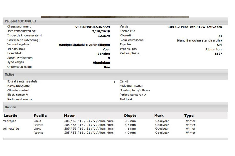 Het kan echter voorkomen dat uit de automatische voertuiginformatie een optie of accessoire naar voren komt die helaas toch niet op de auto aanwezig is.