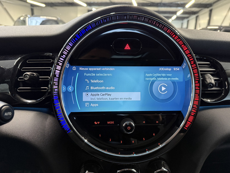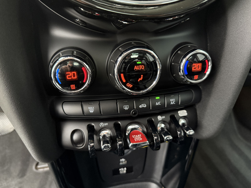 Schitterende Mini Cooper automaat in Rooftop Grey metallic met Black optic pakket en hoogglans zwarte licht metalen velgen. De Mini is voorzien van veel gave opties zoals: Panorama dak, half lederen sport-comfort stoelen, navigatie, Apple Carplay, parkeersensoren, cruis control, LED sfeer interieur verlichting, draadloze telefoonlader, etc..