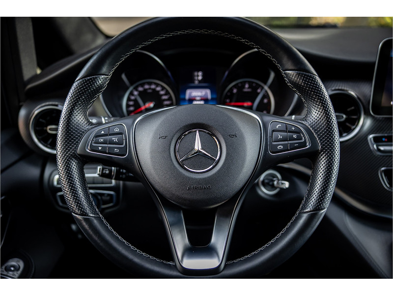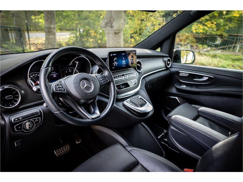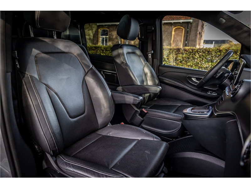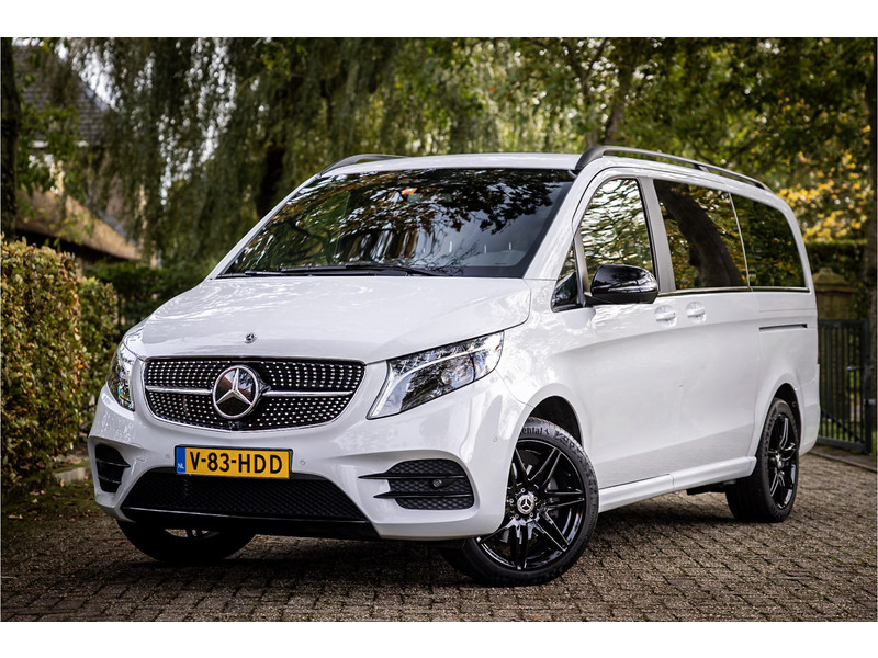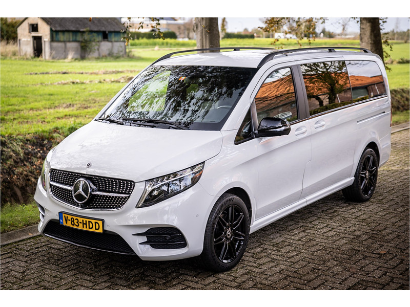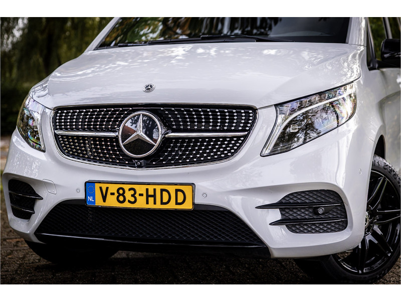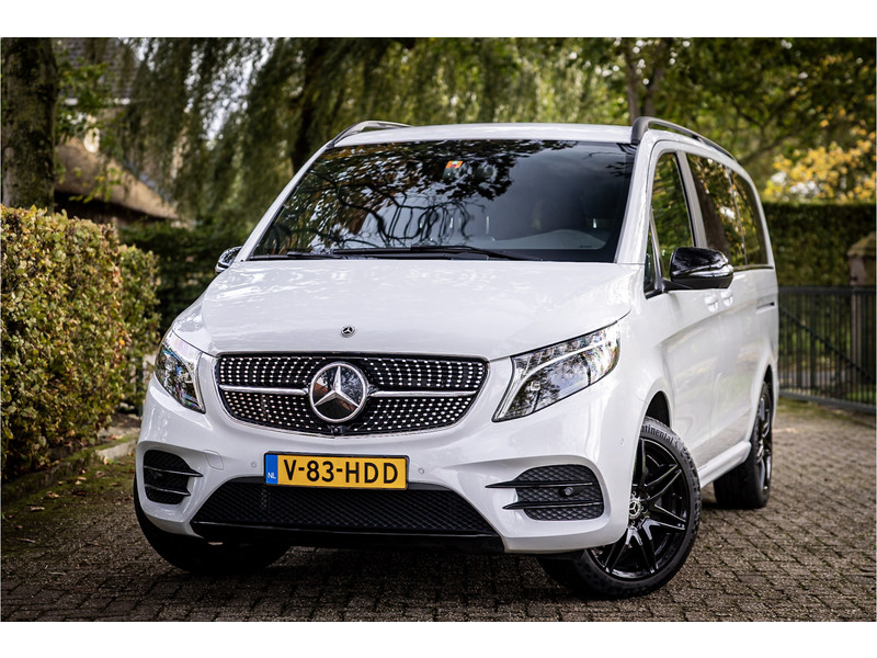 Fraaie Mercedes V250D Lang Dubbele Cabine in AMG Line uitvoering met veel extra opties. Lakkleur is Bergkristalweiss metallic en het interieur is voorzien van zwart leder. De interieurlijsten zijn voorzien van carbon. De prijs van deze auto is exclusief BTW.