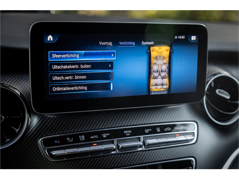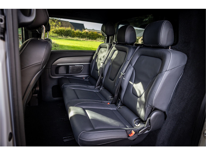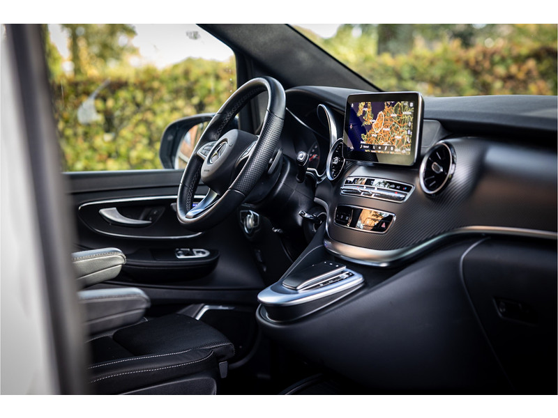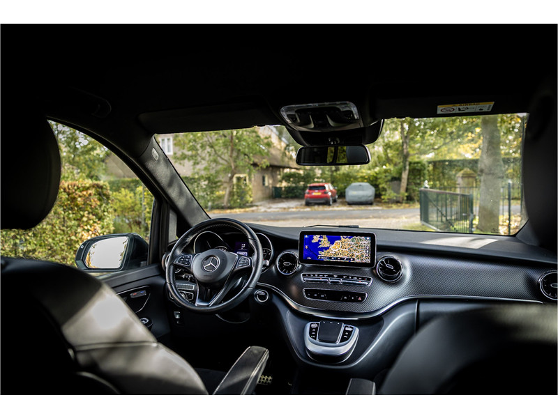 Tot de volledige uitrusting behoort een glazen panoramadak, Burmester Surround Sound, elektrische schuifdeuren links en rechts, stoelventilatie, distronic adaptieve cruise control, 360 graden camera, 19" AMG velgen, afneembare trekhaak, ambienteverlichting, LED koplampen met adaptieve grootlichtassistent, AMG exterieur en interieur, night pakket met hoogglans zwarte raamlijsten en spiegelkappen, MBUX multimediasysteem, verkeerstekenherkenning, dode hoek assistent, actieve rijbaanassistent, elektrisch inklapbare buitenspiegels, Agility Control chassisdemping, dakrails, extra getint glas achter, bluetooth telefoonvoorbereiding met audio streaming, achteruitrijcamera, Apple Carplay en Android Auto, verwarmbare voorstoelen, grote brandstoftank, parkeersensoren voor en achter met parkeerassistent, elektrisch verstelbare lendesteun op voorstoelen, elektrisch bedienbare achterklep, automatische klimaatregeling met gescheiden zones voor en achter, aanhangerlast verhoogd naar 2.500 kg en metallic lak.
