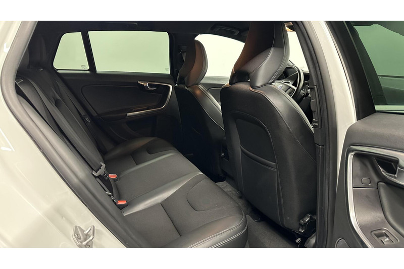 Overzichtelijk en veilig parkeren met de achteruitrijcamera. Overal en altijd. Als u regelmatig met een aanhanger of een fietsendrager op pad bent, is de afneembare trekhaak een praktische extra. Gemakkelijk en veilig is de spraakbediening voor het audio-installatiesysteem en het navigatiesysteem met harde schijf. Daarbij kunt u deze ook bedienen met de knoppen op het stuur. Deze Volvo V60 is voorzien van sensoren aan de achterzijde om een achteropkomend verkeer waarschuwing te geven als de afstand tussen u en een achterligger te klein is. Tot de standaard uitrusting van deze auto hoort ook automatische airconditioning. U bent in deze Volvo ook voorzien van cruise control, keyless entry, dvd-systeem, automatisch dimmende buitenspiegels, isofix-aansluiting en centrale deurvergrendeling met afstandsbediening.