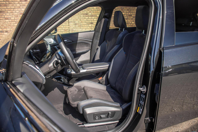 Deze iX1 is uitgevoerd in diepzwart, wat perfect aansluit bij het sportieve M-Sport pakket. De absolute blikvangers zijn de 20 inch BMW Individual velgen, die de auto een exclusieve en krachtige 'stance' geven. Het grote panoramadak zorgt voor een schitterende lichtinval in het interieur en een luxe uitstraling van buitenaf. Voor de nodige praktische inzetbaarheid is de auto tevens voorzien van een trekhaak. Dankzij de aerodynamische lijnen en de moderne BMW-verlichting is dit een EV die overal bewonderende blikken oogst.