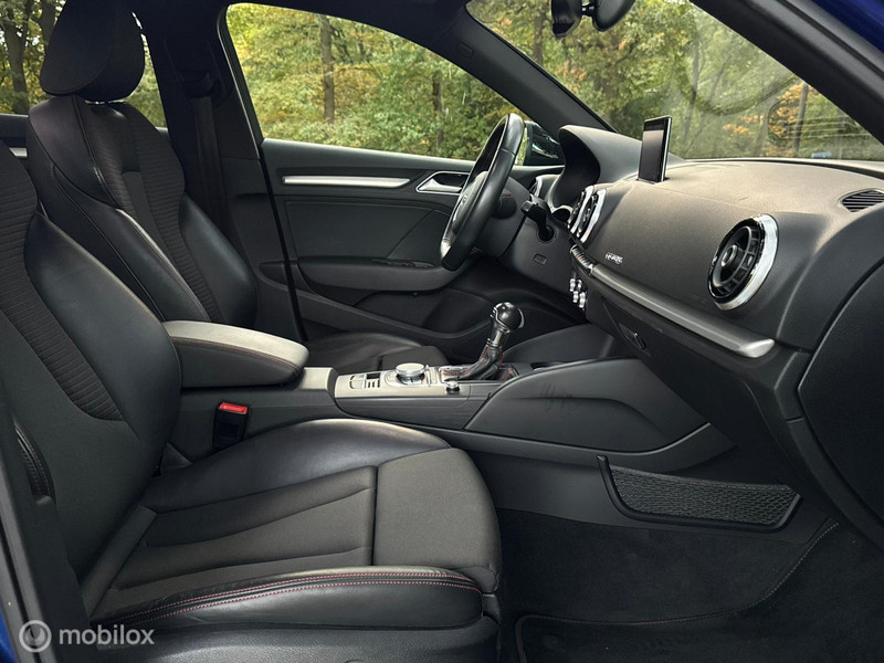 Audi S3 2.0 TFSI S3 Quattro 301pk S-Tronic. November 2014 professioneel omgebouwd naar het 2017 model. Origineel Sepang Blue LY5Q, Origineel Full LED koplampen, Full LED achterlichten, Dynamische knipperlichten, 19inch LM velgen, KW schroefset, H&R stabilisator voor en achter, Shadowline, Hoogglans zwarte exterieur accenten, Maxton diffuser, Camera, Parkeersensoren voor en achter, Keyless entry, Keyless start, Adaptieve cruise-control, Lane assist, Brake assist, Frontcamera/verkeersbordherkenning, Elektrische verstelbare stoelen, Stoelverwarming, Dimmende binnen en buitenspiegels, Regensensor, Lichtsensor, Zwarte hemelbekleding, Alarmsysteem, enz.enz..
