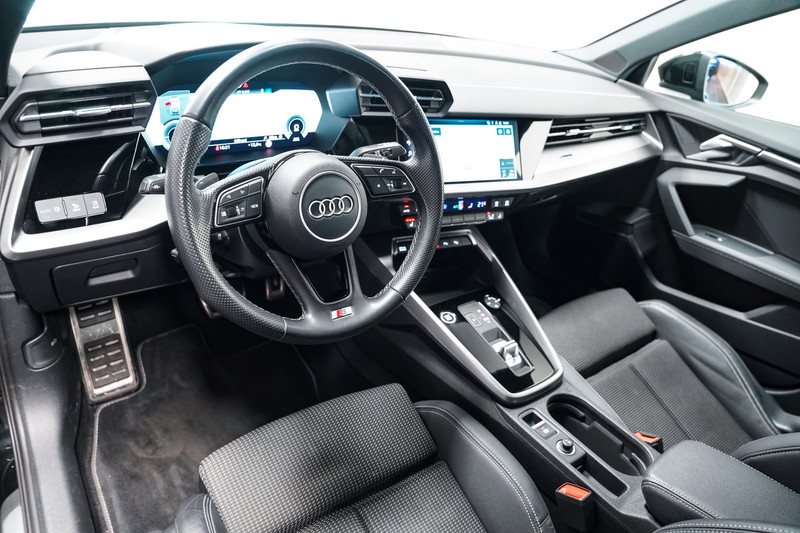 Een fraaie Audi A3 Sportback 45e S-Line met o.a. zwart optiek, 18 inch, matrix led, half lederen sportstoelen, panorama dak, navigartie, side assist, adaptive cruise control, camera en een elektrische klep.
