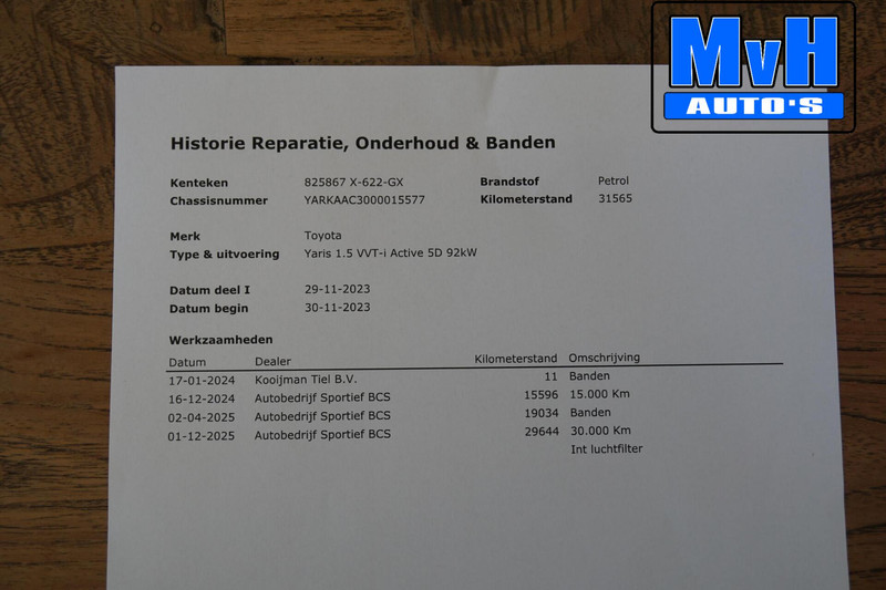 - Onderhoudshistorie aanwezig: Ja