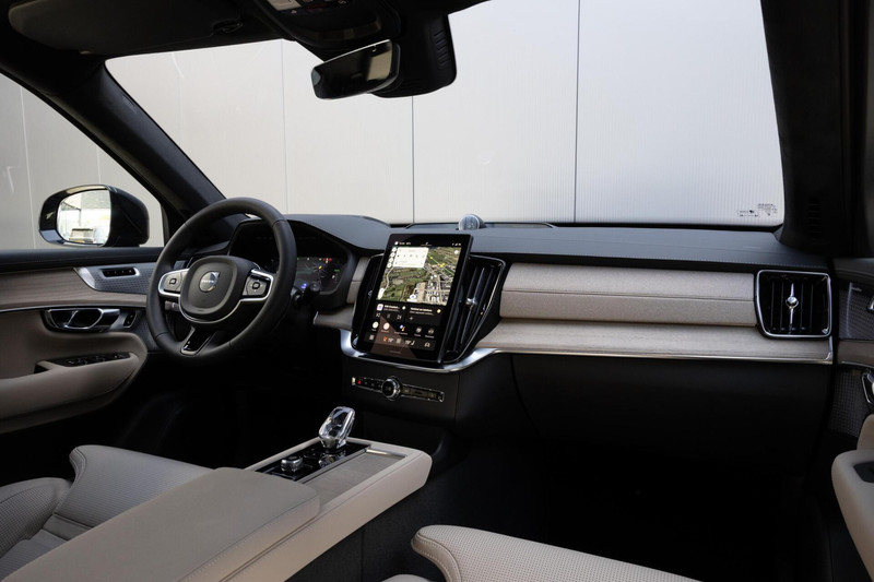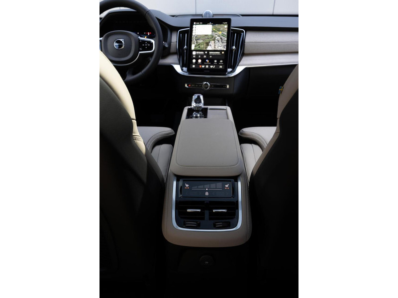 De XC90 is zoals afgebeeld beschikbaar in kleur Onyx Black Metallic lakwerk en biedt een scala aan premium functies. Met luchtvering, nappa leder met ventilatie en massagefuncties, is dit voertuig ontworpen voor ultiem rijcomfort. Het Bowers & Wilkins High-End audiosysteem zorgt voor een indrukwekkende geluidsbeleving.