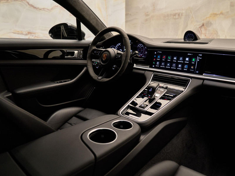 Het interieur biedt maximaal comfort met onder meer stoelventilatie voorstoelen (4D3), verwarmd GT-sportstuur in Alcantara® (2ZF), Soft-Close portieren (GZ2) en sfeerverlichting voor- en achterin (QQ2). De Alcantara® hemelbekleding (6NN) en het Porsche embleem op de hoofdsteunen (5ZF) onderstrepen het exclusieve karakter.