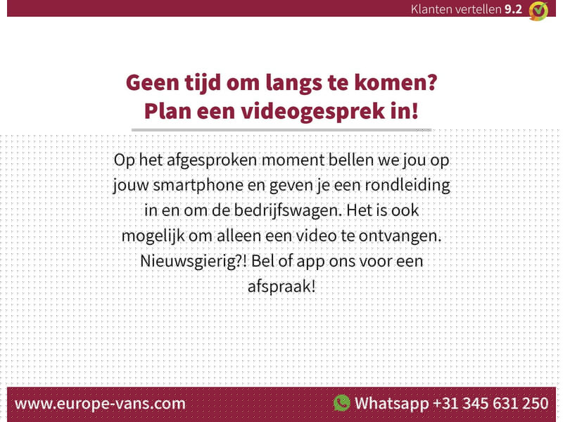 Fabrikant: Europe-Vans B.V. Ambachtstraat 4 4143HB LEERDAM, NL 0345-631250 http://www.europe-vans.com leads@europe-vans.com