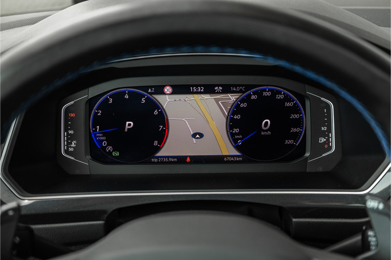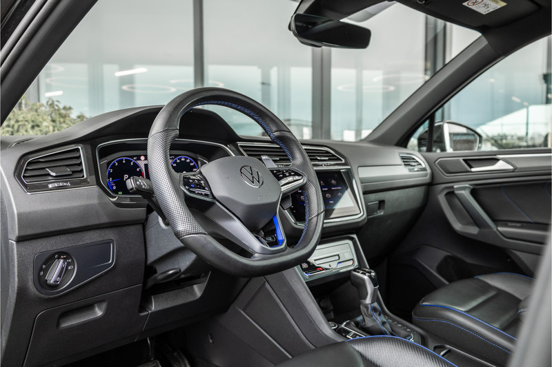De R uitrusting geeft de Tiguan een sportieve identiteit die subtiel genoeg is voor doordeweeks maar uitgesproken genoeg om nooit door te gaan voor gewoon. De R-specifieke bumpers, de 20-inch Estoril wielen, de blauwe remklauwen en het interieur met R sportstoelen, blauw ambient verlicht stuurwiel en de R badge op elke relevante plek — dit is de Tiguan voor de rijder die zijn SUV niet wil opgeven maar zijn rijplezier ook niet. Een compromis dat geen compromis voelt.