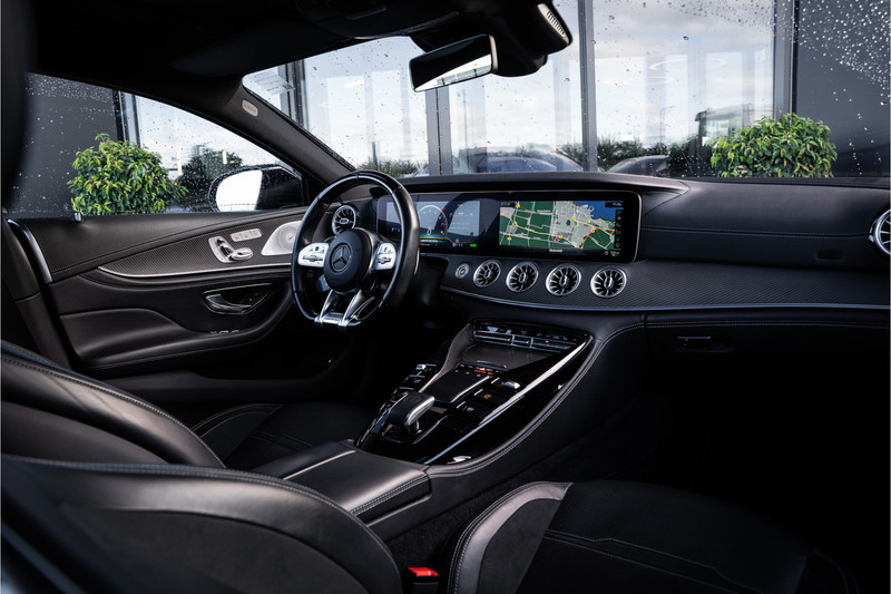 De Mercedes-Benz AMG GT 4-Door Coupe combineert comfort met een uitstekende wegligging en dynamische rijkwaliteiten. Het gaat hier om een auto uit 2020 die 95371 kilometer op de teller heeft staan. Lekker sportief en een tikkie stoer: de AMG-styling geeft een hele dynamische uitstraling. Een zescilinder benzinemotor en een automatische transmissie zorgen samen voor een snelle en comfortabele rijervaring. En o ja, het lederen interieur is ook een vermelding waard! Lekker hoor, die verwarmbare voorstoelen. Helemaal op koude dagen. Bovendien krijgen uw rug en die van uw bijrijder desgewenst extra aandacht door de massagefunctie. Dankzij de elektrische stoelbediening is het gemakkelijk om de optimale zitpositie te vinden. Het interieur baadt in een zee van licht met het elektrische bediende glazen panoramadak. De elektrisch bedienbare achterklep opent met een druk op de knop. De verwarmde achterbank is een luxe extra, speciaal voor de passagiers. Bij de rijke uitrusting horen ook 21 inch lichtmetalen velgen, AMG-styling, LED matrix verlichting, adaptief dempingsysteem, elektrisch inklapbare buitenspiegels en donker getint glas achter.