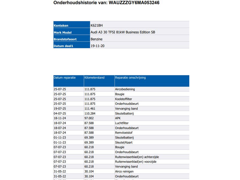 - Onderhoudsboekje aanwezig?: