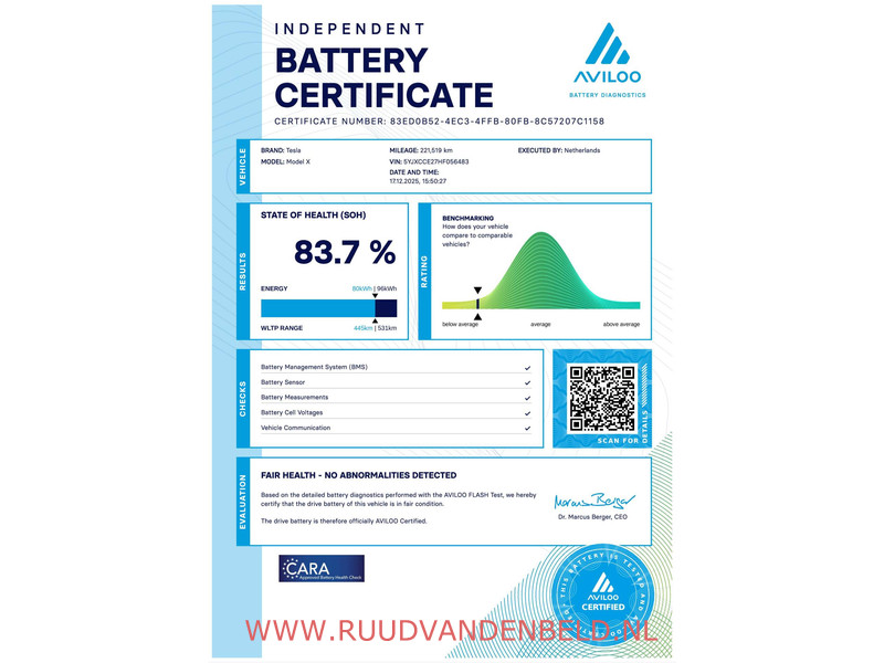 Accu: 90 kWh, Conditie: 84%, Type lithium-ion