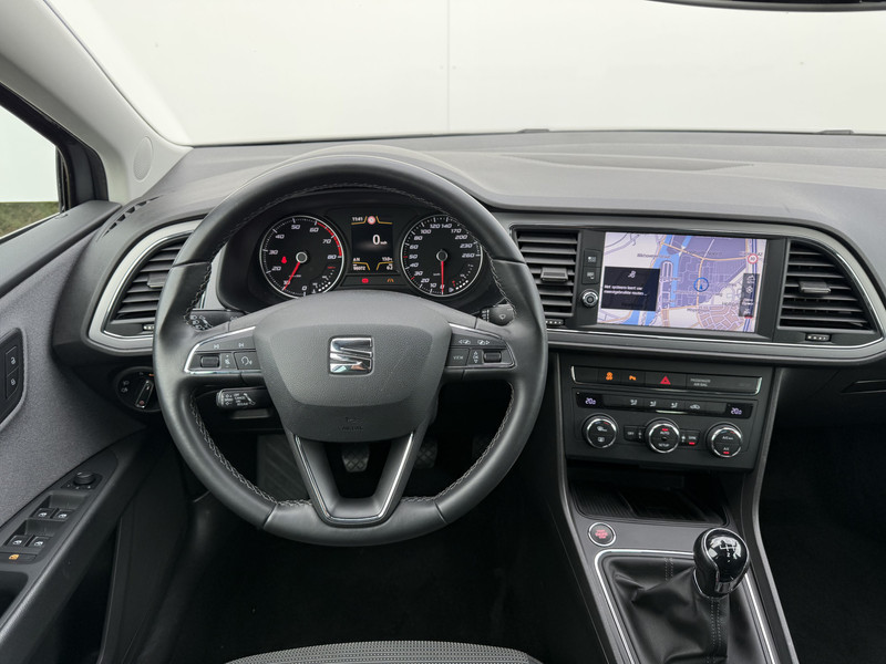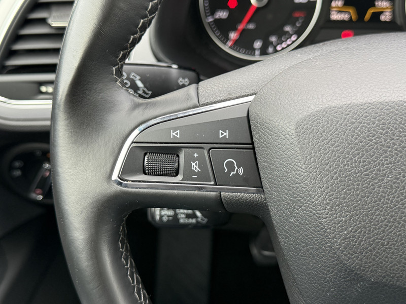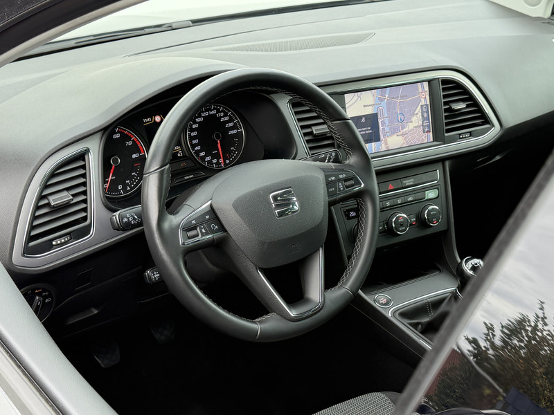 Spraaksturing luistert naar uw stem en bedient de belangrijkste voertuigfuncties. Waarheen gaat de reis? Het full map navigatiesysteem brengt u trefzeker ter plekke! Met de automatische airconditioning selecteert u de gewenste temperatuur. Het systeem doet de rest. Zoals van een eigentijdse auto verwacht mag worden, is deze SEAT Leon voorzien van een draadloze oplaadmogelijkheid voor telefoons. Voor storingvrije digitale radio-ontvangst zorgt de DAB-ontvanger. Met parkeersensoren achter, regensensor, cruise control, keyless entry, automatisch dimmende binnenspiegel en lederen stuur is deze auto helemaal compleet.