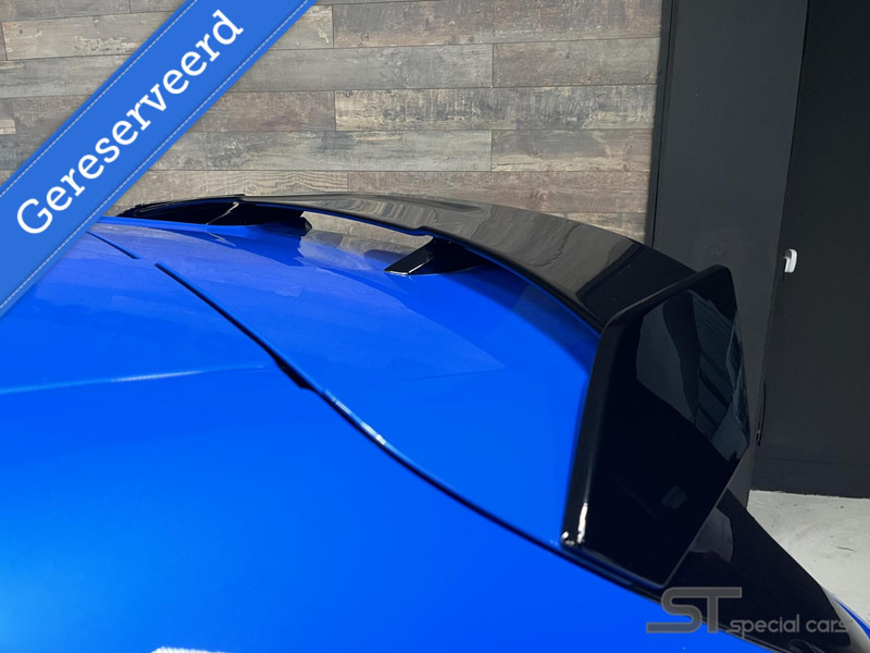 Deze stylingcomponenten versterken niet alleen de visuele impact van de auto, maar verbeteren ook de aerodynamiek, waardoor hij nóg steviger op het asfalt ligt. In combinatie met de Misano Blauwe lak en rode ti-accenten ontstaat een sportieve totaallook die zich verzekert van maximale aandacht.
