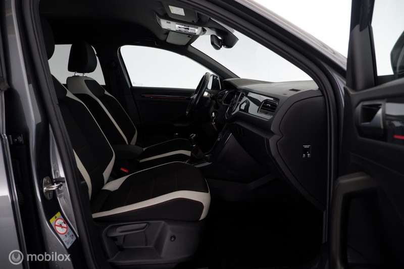 Betreft een nette Volkswagen T-Roc 1.0 TSI 116PK Sport met Executive-, Spiegel- en Sport Pakket Voorzien van o.a. 1/2 Lederen Bekleding, Led Koplampen met Adaptieve Bochten Verlichting en Led verlichting Achter en Grootlicht Assistent, Volledig Digitaal Instrumentenpaneel, Parkeersensoren Voor en Achter, Dodehoek Assistent, Adaptieve Cruise Controle, Rijstrook Assistent met Correctie, Grootbeeld Navigatie, Vol Automatische Airco met Verwarmde Voorstoelen, Bluetooth Telefoon met Multimedia Systeem Mirror Link Apple Carplay en Android Auto, Trekhaak met Trekgewicht van 1.300 Kg en 17 Inch Lichtmetalen Velgen met 4 Seizoensbanden.