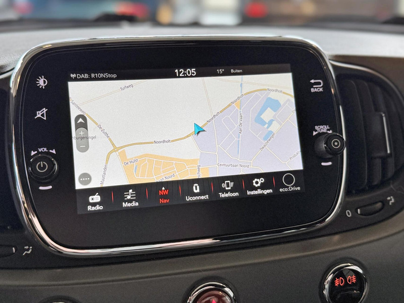 Voor een krachtige en natuurlijke geluidsweergave zorgt het high performance audiosysteem. Het navigatiesysteem zorgt ervoor dat u altijd de juiste en snelste route vindt. De kans op een kop-staart botsing wordt sterk gereduceerd door het systeem van achteropkomend verkeer waarschuwing. De automatische airconditioning zorgt voor een prettige binnentemperatuur. Het geluidssyteem in deze Fiat 500 C is regelbaar met behulp van de audiobediening op het stuur. Ook DAB ontvangst, parkeersensoren achter, regensensor, sportstuurwiel, isofix-aansluiting en centrale deurvergrendeling met afstandsbediening horen tot de voorzieningen op deze auto.