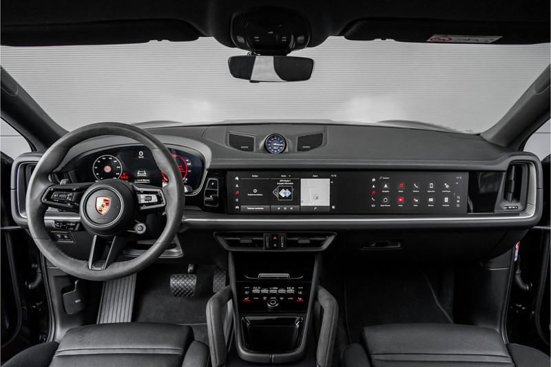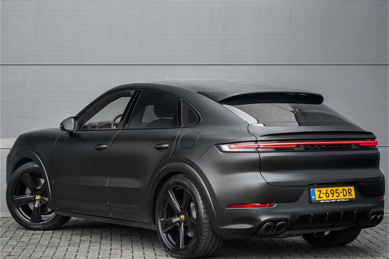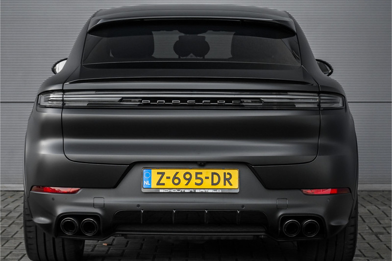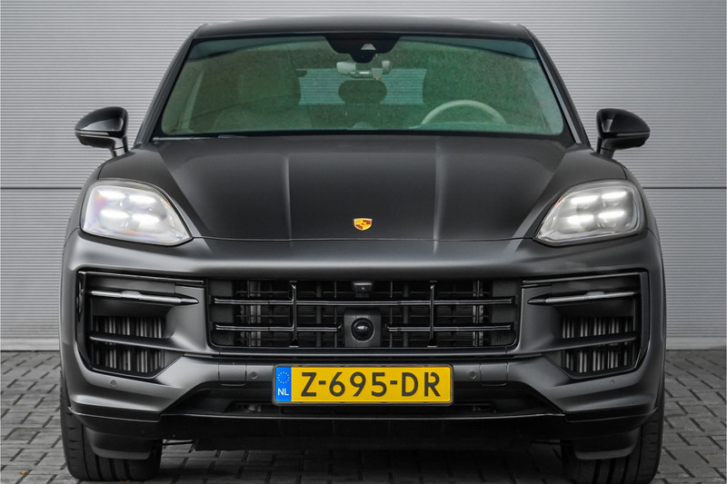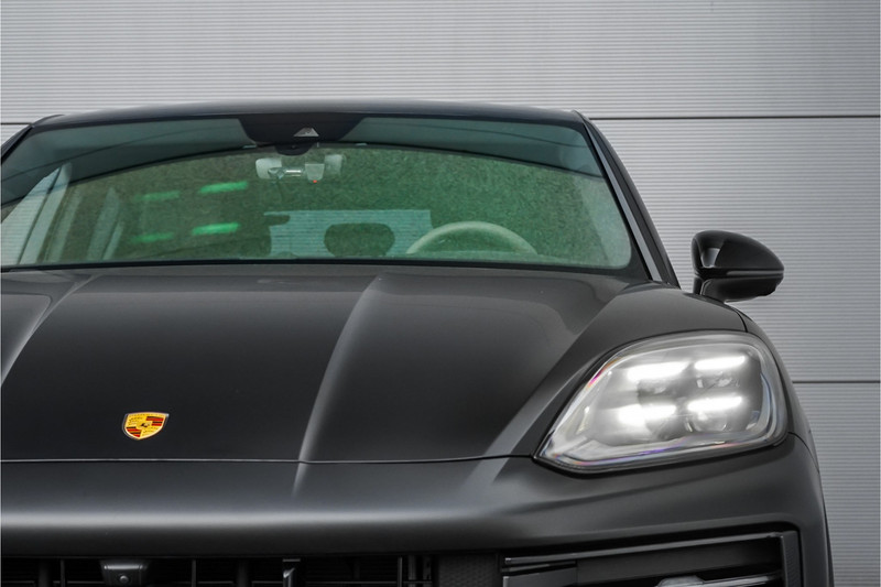 Autobedrijf Schouten biedt u deze zeer compleet uitgevoerde en in sublieme staat verkerende Porsche Cayenne Coupé 3.0 E-Hybrid Sport Design aan, origineel Nederlands afkomstig van de 1e eigenaar, met nog maar 21.160 KM NAP. Het exterieur van de Porsche Cayenne Coupé is uitgevoerd in de diepe metallic kleur: 'Chromiteschwarz', welke volledig in de matte PPF folie is gezet. Dit beschermt de lak, en zorgt voor een uniek uiterlijk. Het interieur is tevens afgewerkt in prachtig zwart leder, met de 14-wegs elektrisch verstelbare comfortstoelen. De nieuwprijs van deze prachtige Porsche is 174.145,= euro, zonder alarm en de matte PPF folie. De fabrieksgarantie loopt nog tot en met 19-03-2026. Verder beschikt de Porsche Cayenne Coupé 3.0 E-Hybrid Sport Design over een mooie lijst met fabrieksopties. Denk hierbij aan opties zoals: