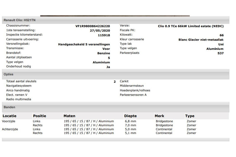 Het kan echter voorkomen dat uit de automatische voertuiginformatie een optie of accessoire naar voren komt die helaas toch niet op de auto aanwezig is.