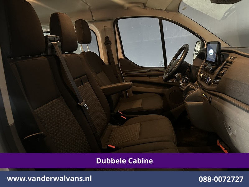 131pk sterke Ford Transit Custom L2H1 Euro6 dubbel cabine met airconditioning, 6 zitplaatsen en camera. Dealer onderhouden en voorzien van LED, cruisecontrol, trekhaak, Android Auto, verwarmde voorruit, stoelverwarming, parkeersensoren, dakdragers en bluetooth telefoonvoorbereiding.