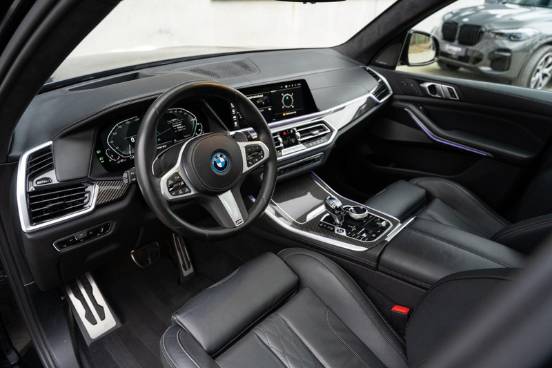 BMW X5 xDrive45e M-Sport 1e eigenaar, dealer onderhouden, M Performance Seats in Merino leder, Carbon interieurlijsten en spiegelkappen, Alcantara hemel, Rear Seat Entertainment, Massagestoelen voor, Panoramadak, Inklapbare trekhaak, Shadow line + koplampen, 22'' velgen, Stoelventilatie voor, 360 camera, Parking Assistant Plus, Zwart Merino lederen comfortseats, Individual Leder dashboard, Stoelverwarming voor en achter, Stuurverwarming, Head up Display, Keyless Entry & GO, Memory, Blauwe M Sport remklauwen, M sportgordels, Sfeerverlichting, BMW Laserlicht, Driving Assistant Proffesional, ACC (Adaptive Cruise Control), Spiegelpakket, Draadloos oplaadvak, DAB Tuner, Zwarte hemel en nog veel meer...