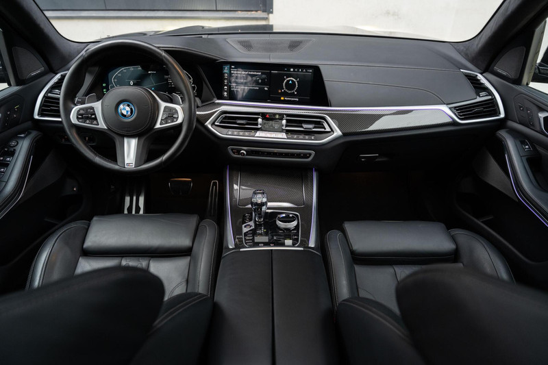 BMW X5 xDrive45e M-Sport 1e eigenaar, dealer onderhouden, M Performance Seats in Merino leder, Carbon interieurlijsten en spiegelkappen, Alcantara hemel, Rear Seat Entertainment, Massagestoelen voor, Panoramadak, Inklapbare trekhaak, Shadow line + koplampen, 22'' velgen, Stoelventilatie voor, 360 camera, Parking Assistant Plus, Zwart Merino lederen comfortseats, Individual Leder dashboard, Stoelverwarming voor en achter, Stuurverwarming, Head up Display, Keyless Entry & GO, Memory, Blauwe M Sport remklauwen, M sportgordels, Sfeerverlichting, BMW Laserlicht, Driving Assistant Proffesional, ACC (Adaptive Cruise Control), Spiegelpakket, Draadloos oplaadvak, DAB Tuner, Zwarte hemel en nog veel meer...