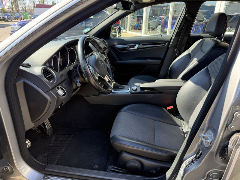 Zijn dynamische uiterlijk maakt al direct duidelijk wat voor rijervaring u van deze Mercedes-Benz C-klasse Estate mag verwachten: pure sportiviteit. Met de AMG-sportpakket laat dit model zich van zijn meest dynamische kant zien. De krachtige benzinemotor staat garant voor uitstekende prestaties. In weer een wind een cabrio-gevoel? Daarvoor zorgt het elektrisch bediende glazen panorama dak. En het moeiteloos in- en uitladen is te danken aan de elektrisch bedienbare achterklep. De verwarmbare voorstoelen zijn een heerlijke extra optie, waarmee u uzelf en uw bijrijder een groot plezier doet. De sportstoelen geven u veel zitsteun. U bespaart brandstof met het start-stopsysteem. Bij elk stoplicht, in iedere file en voor elke gesloten spoorboom of open brug. En reken maar dat dát scheelt! Verder is de Mercedes-Benz uitgerust met: 17 inch lichtmetalen velgen, AMG-sportpakket, sportonderstel, LED-dagrijverlichting, aluminium dakrailing en in delen neerklapbare achterbank.