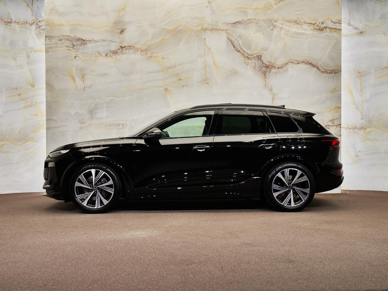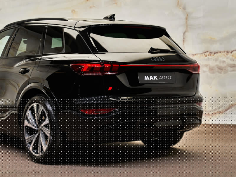 Mythoszwart metallic (0E0E) lak in combinatie met het Zwart optiekpakket (PAH) en de 21” lichtmetalen velgen (46X) geeft de SQ6 e-tron een krachtige en sportieve uitstraling. De Privacybeglazing (QL5), Matrix LED-koplampen (PXC) en Digitale OLED-achterlichten (8VY) met dynamische animatie zorgen voor een opvallende lichtsignatuur. De Dakreling zwart (3S2) en de donkere Audi-ringen (4ZP) onderstrepen het sportieve karakter, terwijl het Panoramadak (3FU) het interieur vult met licht en ruimte.