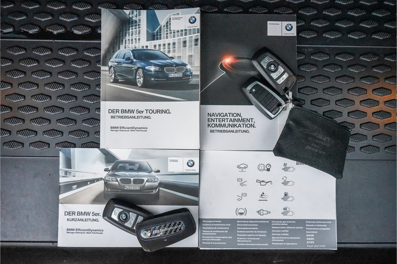 Autobedrijf Schouten biedt u deze BMW 5-Serie Touring 520d High Executive M-Pakket aan. Het betreft een vol uitgevoerde 5-Serie, in de exterieurkleur: 'Carbonschwarz', met een zwart lederen interieur. Verder beschikt de BMW 5-Serie Touring 520d High Executive M-Pakket over een mooie lijst met opties. Hieronder ziet u een kleine greep uit de fabrieksoptielijst: