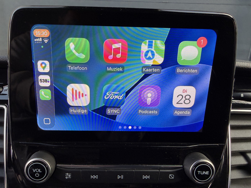 De achteruitrijcamera maakt inparkeren gemakkelijker dan ooit. Als u de adaptive cruise control inschakelt, regelt de auto zelf de snelheid en de afstand tot de auto voor u. In het zeldzame geval van een storing weet u nog eerder dan de monteur wat er mankeert. Uw smartphone met remote services geeft direct inzicht. U bedient het navigatiesysteem en het audiosysteem via knoppen op het stuur. Zo kunt u steeds uw aandacht gericht houden op de weg. Om de veiligheid onderweg te verhogen, heeft deze Ford zowel een automatisch inschakelbare verlichting als een regensensor aan boord, zodat hij zelf de verlichting en de ruitenwissers kan inschakelen. En dan is deze auto ook nog eens voorzien van airconditioning, lederen stuur, centrale deurvergrendeling met afstandsbediening, boordcomputer en lederen versnellingspook.