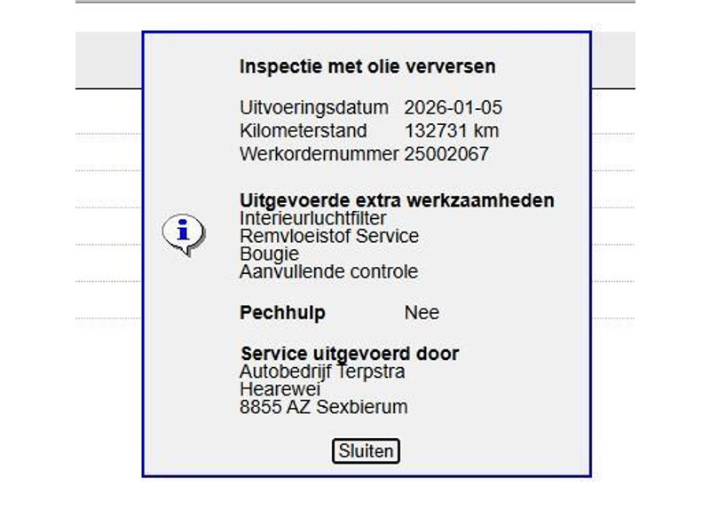 - Onderhoudshistorie aanwezig: Ja