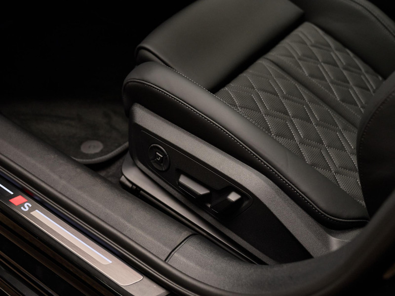 Het interieur is voorzien van elektrisch verstelbare sportstoelen plus (3L5), uitgevoerd in nappaleder zwart met ruitstiksels (PWO). De voorstoelen beschikken over actieve ventilatie en massagefunctie (4D5), en ook de voor- én achterstoelen zijn verwarmbaar (4A4). Het multifunctioneel sportstuurwiel (1XY) is voorzien van schakelpaddels en stuurverwarming. De automatisch te openen en sluiten achterklep met sensorbediening (4E7) en de zwenkbare trekhaak (1D4) verhogen het gebruiksgemak. Daarnaast is deze S5 uitgerust met elektronische interieurvoorverwarming (9M1) en comfortsleutel met safebeveiliging (4K6).