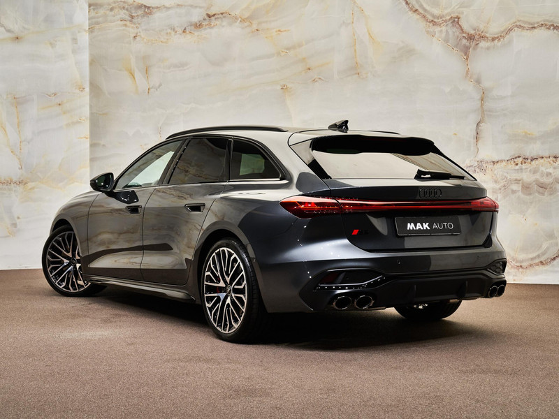 De Audi S5 Avant onderscheidt zich met het Optiekpakket zwart (PAH), waaronder hoogglans zwarte raamlijsten, zwarte spiegelkappen en zwarte uitlaatsierstukken.