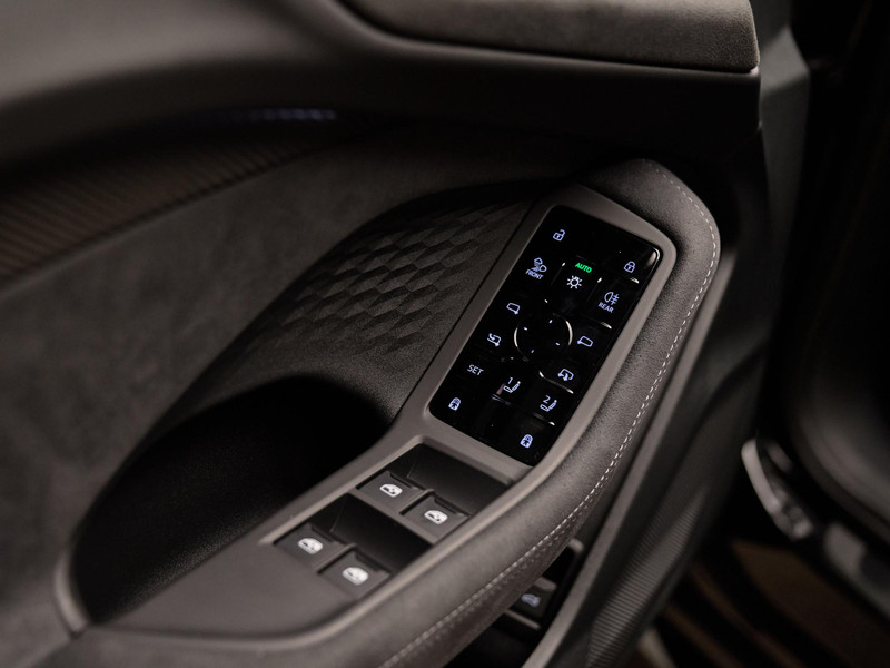 De rode remzadels (PC2), 20” multispaak velgen in zwart metallic (F19) en Matrix-ledkoplampen met dynamische richtingaanwijzers (8IY / 8VY) benadrukken de sportieve uitstraling. Binnenin zorgen de ambiente verlichting pro (QQ4) en interieurdelen in vanadiumoptiek (QJ3) voor een moderne en luxe sfeer.