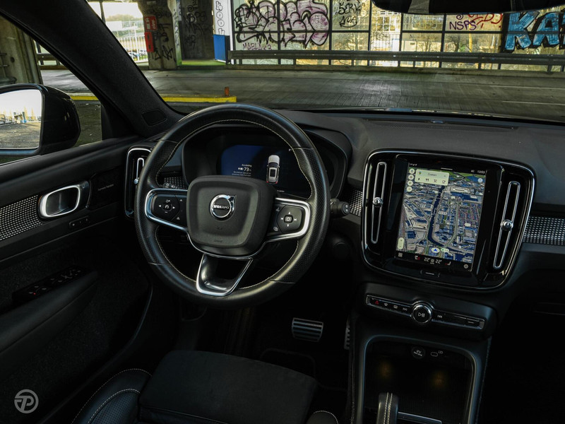 Aan de buitenzijde benadrukken de 19 inch lichtmetalen velgen, LED-verlichting rondom, extra getint glas achter en de sportieve R-Design accenten het dynamische karakter van deze XC40.