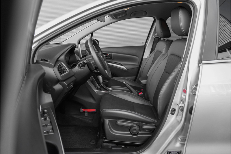Autobedrijf Schouten biedt u deze Suzuki S-Cross 1.4 BoosterJet Style Smart Hybrid aan, origineel Nederlands en volledig dealeronderhouden. Met nog maar 42.500 KM NAP. Het exterieur is uitgevoerd in grijs metallic, gecombineerd met een zwart lederen interieur. Verder beschikt de Suzuki S-Cross 1.4 BoosterJet Style Smart Hybrid over een mooie lijst met opties. Denk hierbij aan opties zoals: