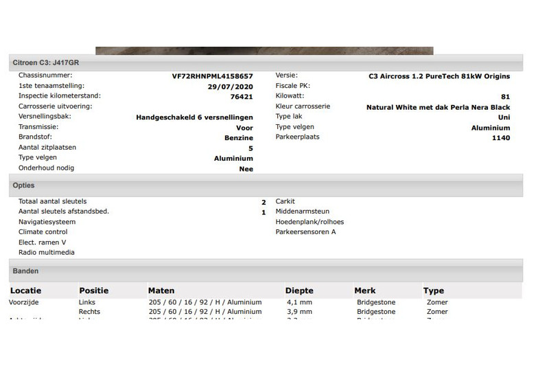Het kan echter voorkomen dat uit de automatische voertuiginformatie een optie of accessoire naar voren komt die helaas toch niet op de auto aanwezig is.