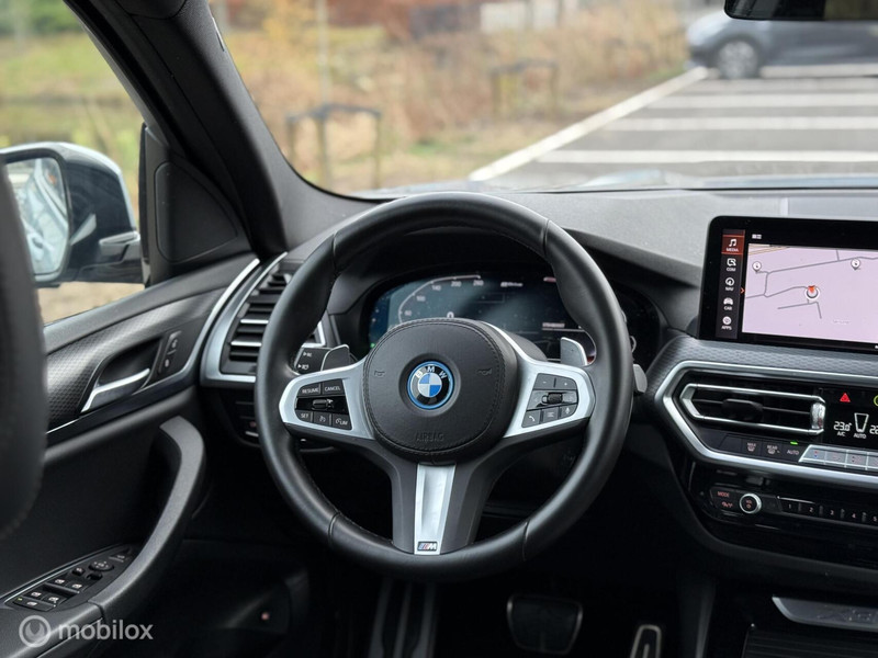 Met z'n extra elektromotor geeft de hybride BMW X3 een heel nieuwe dimensie aan het rijden. Maximaal comfort en stijl krijgt u dankzij het lederen interieur. In deze uitvoering is de X3 voorzien van mooie, maar ook functionele sportstoelen. Licht, lucht, ruimte en gemak wordt verzorgd door het elektrisch bedienbare glazen panoramadak. De elektrisch bedienbare achterklep opent met een druk op de knop. Tot de uitrusting van deze BMW behoren ook 19 inch lichtmetalen velgen, LED koplampen, warmtewerend glas, in delen neerklapbare achterbank, LED-achterlichten en snelheidsafhankelijke stuurbekrachtiging.