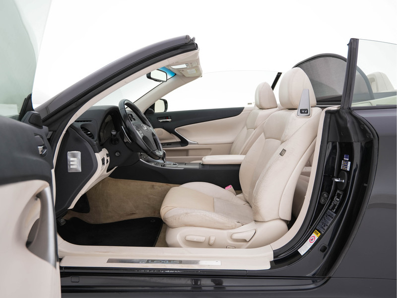 Deze Lexus IS 250C Luxury Automaat is uitgevoerd in het stijlvolle Obsidian Black Metallic met een luxe “Newport” geperforeerd beige lederen interieur. Een elegante cabriolet met de bekende Lexus-bouwkwaliteit, comfort, betrouwbaarheid en een zeer rijke uitrusting. Met opties zoals verwarmde voorstoelen, Airscarf, Keyless Entry/Start, full-map navigatie en een achteruitrijcamera biedt deze IS 250C een premium rijervaring in alle seizoenen.