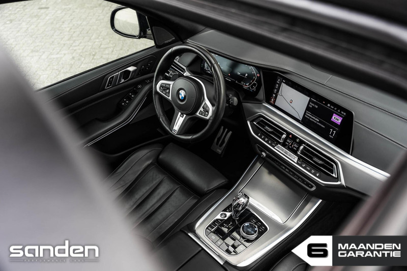 Het interieur is gericht op comfort en luxe. De stoelen zijn voorzien van massagefunctie en elektrisch verstelbaar met memory, wat lange ritten bijzonder aangenaam maakt. Het grote panoramadak zorgt voor een ruimtelijk gevoel, terwijl het premium Harman/Kardon audiosysteem een hoogwaardige geluidsbeleving biedt. Met opties zoals BMW Laser verlichting, Head-Up Display, soft close portieren en een 360º camerasysteem is deze X5 volledig uitgerust met moderne technologie.