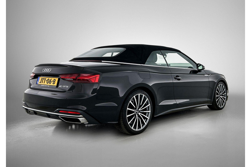 Zijn dynamische uiterlijk maakt al direct duidelijk wat voor rijervaring u van deze Audi A5 Cabriolet mag verwachten: pure sportiviteit. Hij heeft een benzinemotor en een automatische transmissie. Het lederen interieur ademt luxe, en het zit uiteraard fantastisch. Een weldaad voor uw rug en die van uw bijrijder: deze Audi A5 Cabriolet heeft verwarmbare voorstoelen met massagefunctie. Chauffeur en bijrijder zitten stabiel in de scherpe bochten door de sportstoelen. Met het elektrisch bedienbare dak verandert u deze cabrio in luttele seconden in een auto voor zonaanbidders. Met matrix LED-verlichting rijdt u eigenlijk altijd met groot licht, dus maximaal zicht. Toch is verblinden er niet bij, want het systeem regelt de verlichting zo dat tegenliggers er geen last van hebben. Ook 19 inch lichtmetalen velgen, sportonderstel, warmtewerend glas, LED-achterlichten, verstelbare lendensteunen en windscherm horen tot de voorzieningen op deze auto.
