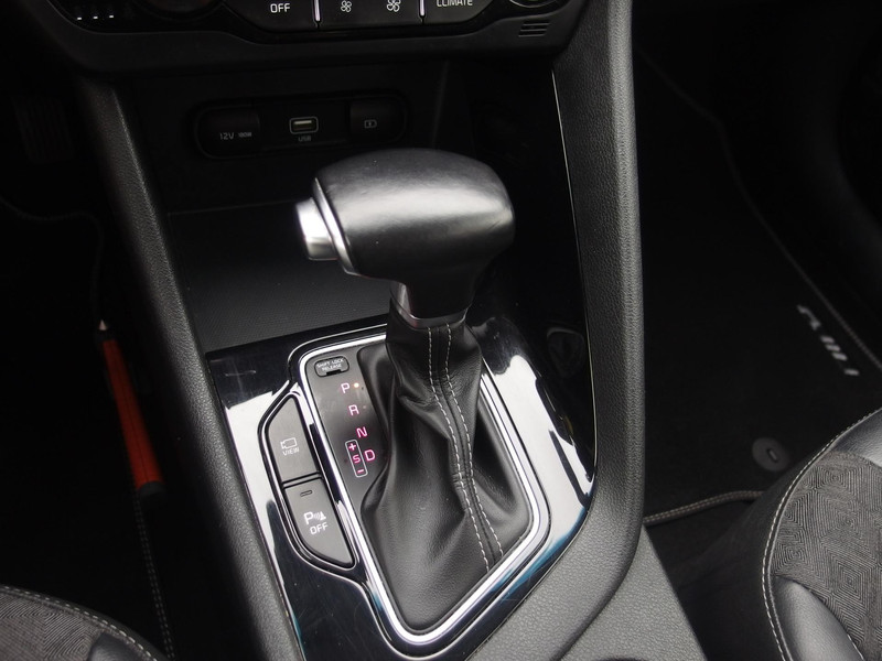 Een vergeten muurtje, een verborgen paaltje? Dat gebeurt niet meer, dankzij de achteruitrijcamera. Adaptive cruise control houdt de ingestelde snelheid vast en houdt automatisch afstand tot uw voorligger. Terwijl het in dashboard opgenomen navigatiesysteem de ideale route voor u uitstippelt, geniet u van de kwaliteit van het audiosysteem met DAB-ontvangst. De bediening is bovendien gemakkelijk via knoppen op het stuur. Of het buiten nu warm is of koud, dankzij automatische airconditioning is het binnen altijd behaaglijk. Achter het stuur van deze Kia bent u niet alleen. De auto kijkt als het ware met u mee tijdens de rit. De regensensor schakelt de ruitenwissers in als het nodig is en de automatisch inschakelbare verlichting doet de lichten voor u aan. En deze auto heeft ook sportstuur met schakelpaddels, automatisch dimmende binnenspiegel, isofix-aansluiting, centrale deurvergrendeling met afstandsbediening, bagage afdekhoes en lederen versnellingspook als standaard uitrusting.