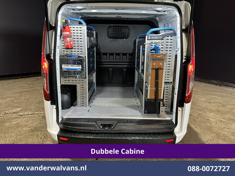 131pk sterke Ford Transit Custom L2H1 Euro6 dubbel cabine met airconditioning, 6 zitplaatsen en navigatie. Dealer onderhouden en voorzien van LED, Apple Carplay, Android Auto, cruisecontrol, parkeersensoren, achterklep, 2800kg trekvermogen en bluetooth telefoonvoorbereiding.