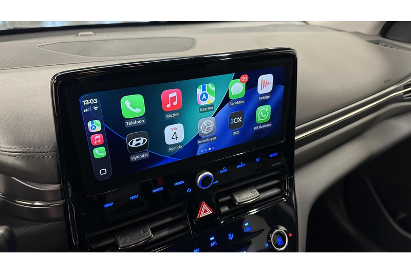 Het digitale dashboard vertelt u alles wat u wilt weten voor een slimme, comfortabele en veilige rit. Afstand schatten bij het achteruitrijden? Niet nodig. U weet het precies, dankzij de achteruitrijcamera. Met adaptive cruise control houdt deze auto automatisch afstand tot uw voorligger. De speciale app verbindt met Connected Services, die de status van vitale functies bijhoudt en waarschuwt als u bijvoorbeeld moet tanken, de bandenspanning moet controleren of olie moet bijvullen. De high-end technologie van het high performance audiosysteem staat garant voor geluid van het hoogste niveau. Met full map navigatiesysteem, automatische airconditioning, schakelpaddles aan het stuur, draadloos opladen, DAB ontvangst en regensensor is deze Hyundai helemaal compleet.