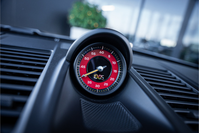 Het exterieur laat direct zien waar deze 911 voor gemaakt is. De kenmerkende grote achtervleugel, agressieve luchtinlaten en aerodynamisch verfijnde carrosserie zorgen voor serieuze downforce én een uitstraling die pure performance ademt. Elk element heeft een functie en draagt bij aan stabiliteit, koeling of grip.