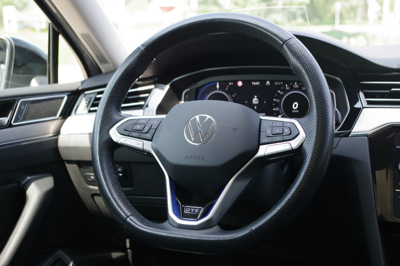 De Passat GTE kan volledig elektrisch stil en uitstootvrij rijden – ideaal voor woon-werkverkeer of stadsritten. Op langere trajecten schakelt de krachtige TSI-benzinemotor automatisch bij voor extra actieradius en soepele prestaties.